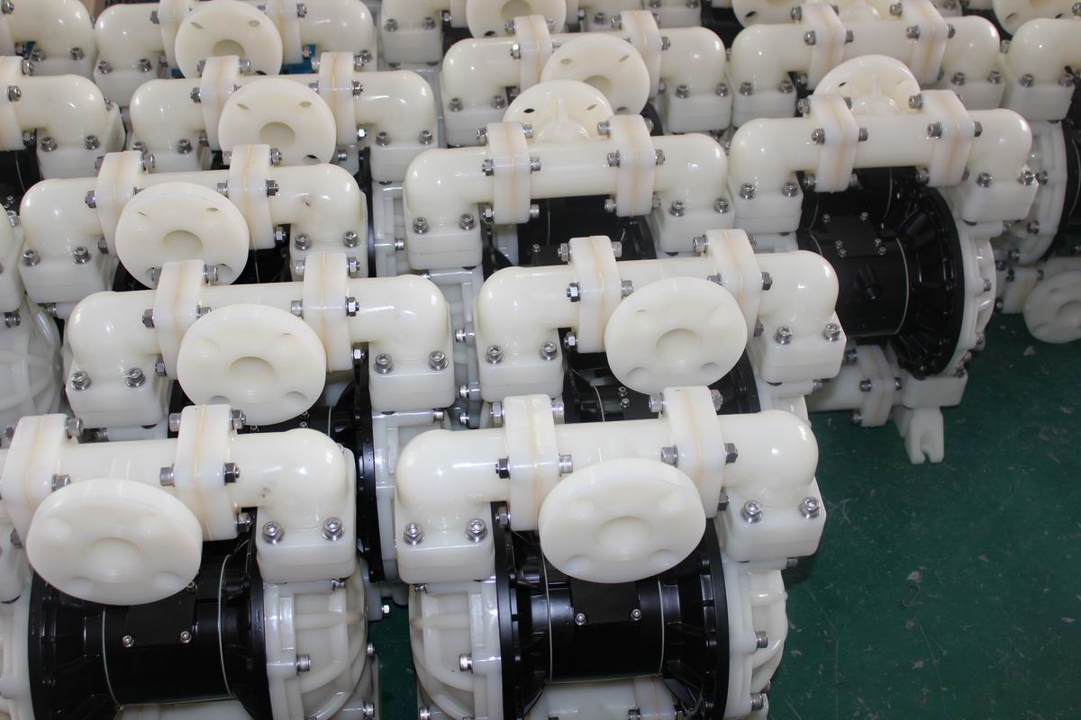 俠飛泵特征: PP泵材質(zhì)為PP-H,PP-H具有更強的耐腐蝕性,耐磨性,更好的抗低溫高溫性能,不易開裂。 閥球采用專用機進(jìn)一步研磨加工,圓整度高,密封性能好。 計算膜片移動距離,降低膜片受力,具有更長的使用壽命。 四螺栓連接設(shè)計,密封性能好,實際干吸可達(dá)4-7米。 三段式上下蓋,安裝靈活方便。 一體式設(shè)計的膜片護(hù)塊,具有優(yōu)異的耐壓,耐高溫性能,廣泛應(yīng)用于壓濾機行業(yè)。